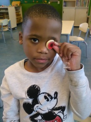 In de gymzaal spelen we spokenpakkertje en het spel van het verdrietige spookje. (Sorry, de foto's zijn nogal bewogen)