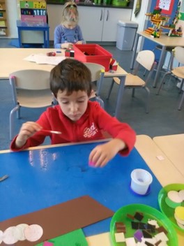 Er wordt veel gespeeld met de mini pietjes. Ze worden aan allerlei soorten materiaal toegevoegd.
