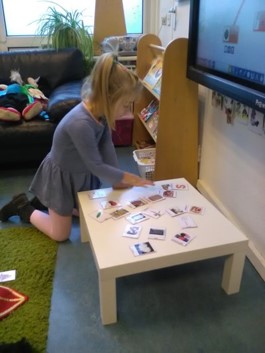 We zoeken woordkaartjes bij de voorwerpen. Zijn ze hetzelfde? Soms zien dingen er op een plaatje heel anders uit, maar je noemt het toch hetzelfde.