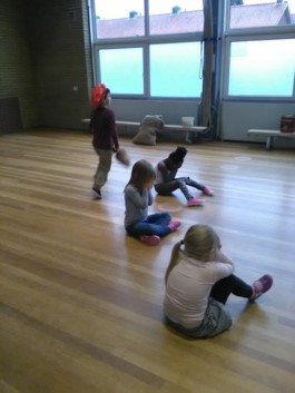 In de gymzaal doen we sinterklaasspelletjes.We galopperen net als Amerigo en spelen pepernotenregen.