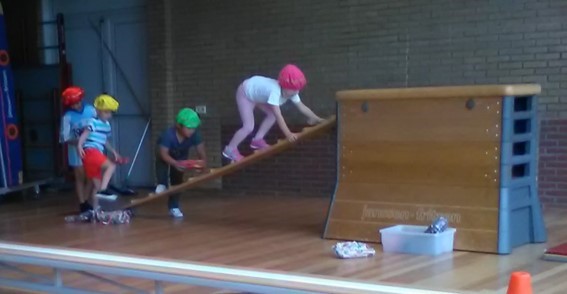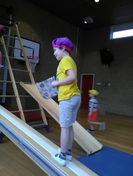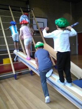 Ook vrijdag gingen we weer naar de gymzaal. Er stond een groot klautercircuit klaar. Snel omkleden.