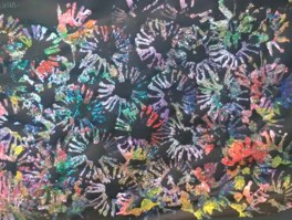 Voordat de verf helemaal droog is strooien we er verschillende kleuren glitter over.