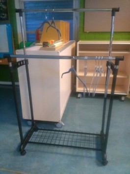Een bouwpakket van een kledingrek.Het in elkaar zetten is niet zo simpel. Goed de handleiding bestuderen helpt wel een beetje.