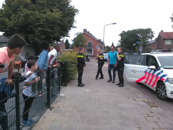 We mogen allemaal even in de politieauto zitten.