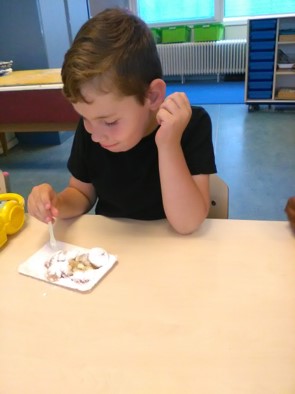 Dat gaat er wel in. Mmmm. De broodtrommeltjes zijn deze dag niet allemaal leeg mee naar huis gegaan.