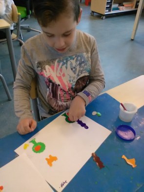 Er is nog meer verf gebruikt deze week. Juf Engelien van groep groen (naast onze klas) gaat op een andere school werken. Veel dichter bij haar huis. Dan hoeft ze niet meer iedere dag zo lang te reizen. We maken een afscheidscadeautje.