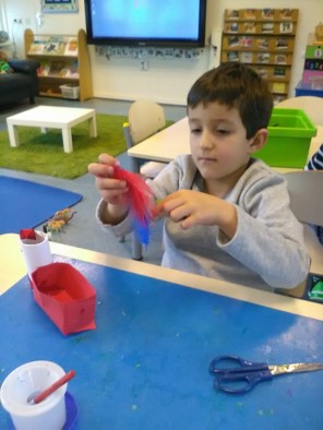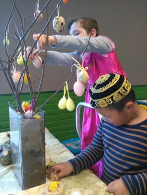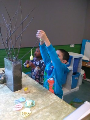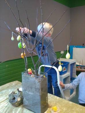 Over een paar weken is het al Pasen. De klas komt langzaam in paassfeer. Iedereen helpt met het versieren van de paastakken.