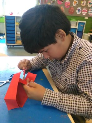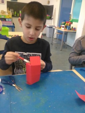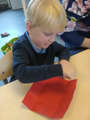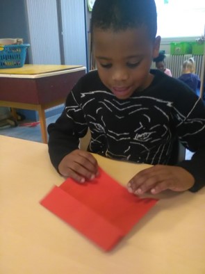 Tijdens de werkles worden Dottie en haar kuikens gevouwen, getekend, geknipt en geplakt.