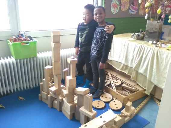 De laatste tijd is de bouwhoek erg populair. De bouwwerken worden steeds mooier. Ze zijn er zo trots op: "Juf, maak je even een foto?" Ja hoor, natuurlijk.
