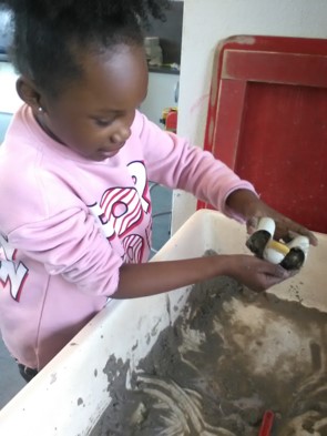 Eitjes maken van de klei.