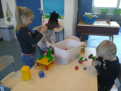 Wat een korte week was dit. Voor de kinderen 2 dagen en voor mij zelfs maar 1. Tussen de voorbereidingen voor de paaslunch door is er lekker gespeeld met de blokjes,