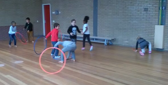 Het is geen probleem als het regent. Ook in de gymzaal kunnen we ons goed vermaken.