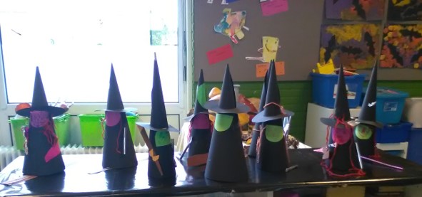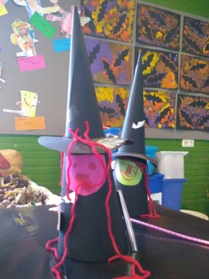 Wat een leuke heksjes zijn er gemaakt, compleet met toverstafjes en bezemstelen.
