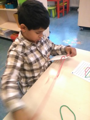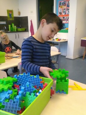 Er is deze week veel gewerkt met de materialen uit de kasten. Soms met een opdracht, soms vrij.
