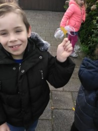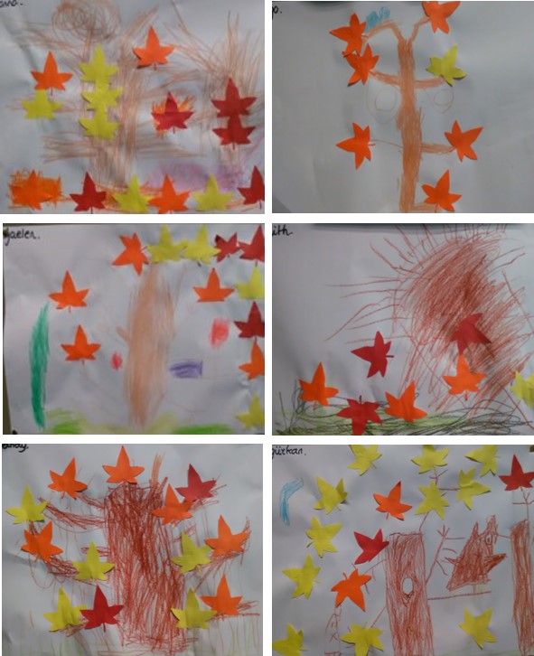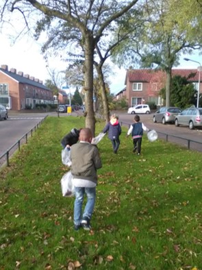 Het is november en al een tijdje herfst, maar we merken er nog niet zoveel van. Op het schoolplein liggen maar weinig herfstbladeren. Dat komt deels door het mooie weer, maar ook omdat de grote bomen rond het plein dit voorjaar heel drastisch zijn gesnoeid. Om bladeren te vinden gaan we in de omgeving van school op zoek. De bedoeling is om zoveel mogelijk verschillende bladeren te vinden. Met verschillende vormen en verschillende kleuren.