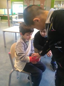 In de kring hebben alle kinderen wel wat te vertellen over de vakantie. Marc heeft in de vakantie een ongelukje gehad en daarbij is zijn pols gebroken.