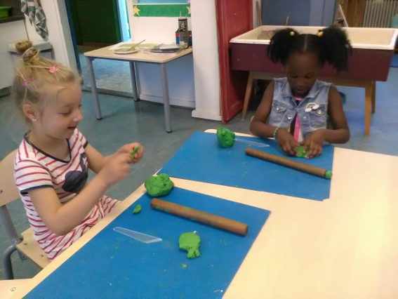 Na al dat geklets bespreken we het onderwerp van deze dagen. We gaan een cadeautje maken voor Moederdag. Hiervan kan ik natuurlijk niets laten zien. De moeders moeten maar even geduld hebben tot zondag. Wel kan ik verklappen dat er iets geverfd is.