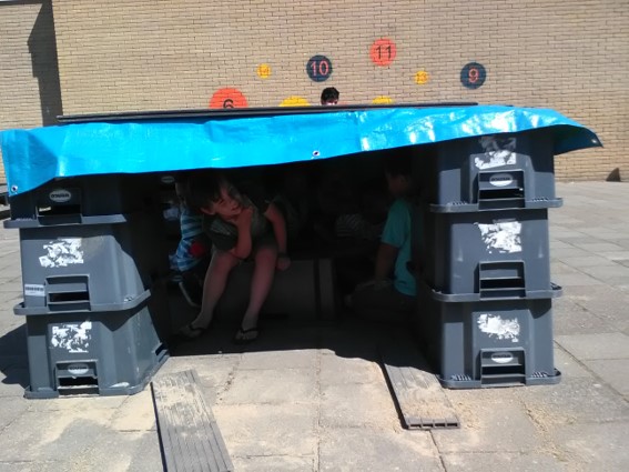 We hebben er een paar kratten bij gekocht. Nu zijn er genoeg om een grote hut te bouwen.
