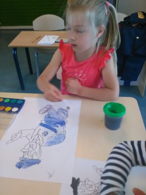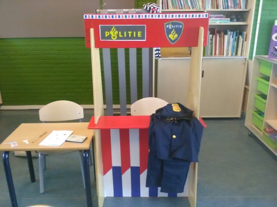Maandag komt er belangrijk bezoek. De wijkagent komt vertellen over haar werk. We hebben een hele waslijst met vragen voor haar bv. Weet je waar mijn mama's fiets is? Heb je de sleutel van de gevangenis bij je? Schiet je met een pistool of met een shotgun? Maar ook: Wil je koffie? en Hoe heet jouw speurhond? Er is al een politiebureau (inclusief gevangenis) in aanbouw. Ze kunnen niet wachten om erin te gaan spelen.