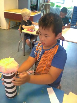 Bij de inloop stonden er nog een paar opdrachten klaar o.a. de stempeldozen