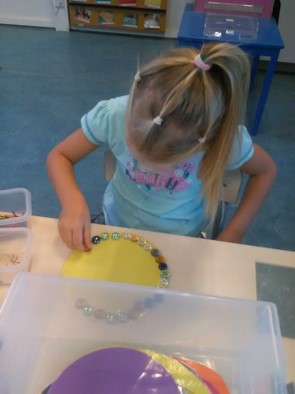 Na afloop geven we onze geknutselde bling-blingkettingen aan de schoolverlaters.