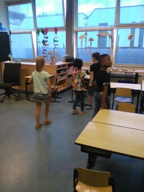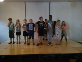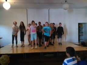 We zijn ook het eerst aan de beurt om onze rap te laten zien en horen. Wat hebben ze het geweldig goed gedaan. En geen spoortje van plankenkoorts. Het is helaas niet gelukt om een foto te maken van het optreden. Daarom maar een foto van de generale repetitie. Stoer zijn we hè?