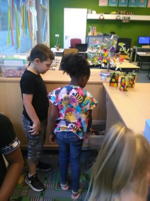 Verder hebben we lekker gespeeld en geholpen met opruimen. Nu alle oudergesprekken zijn geweest weten de kinderen ook waar ze volgend jaar naar toe gaan. De kinderen die naar groep Groen gaan hebben maandag hun nieuwe klas alvast bekeken. Gelukkig, er is daar ook veel speelgoed en zelfs een zandtafel met "plakzand".